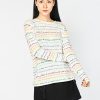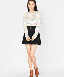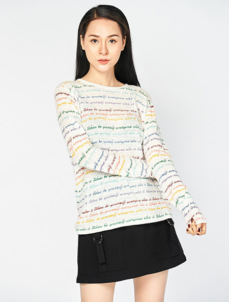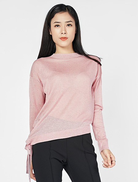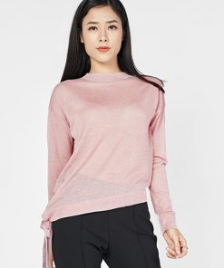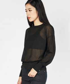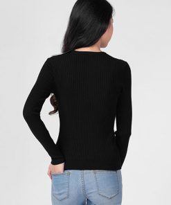 Áo len nữ mỏng, cổ tròn dài tay dệt đố