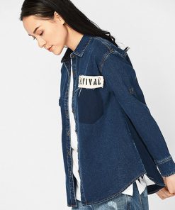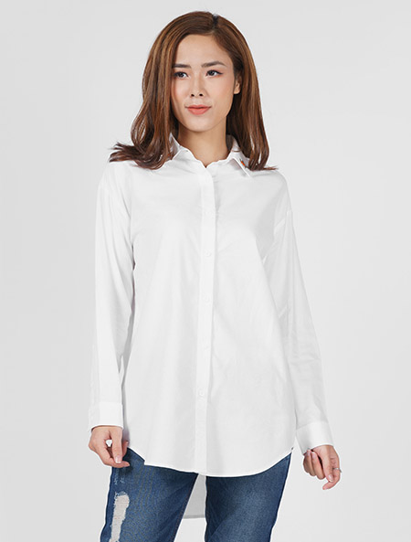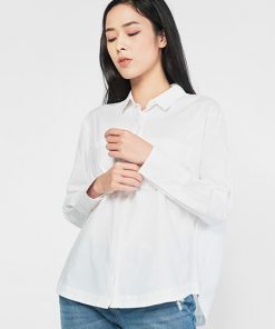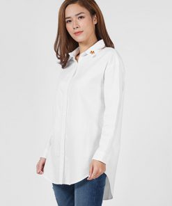 Áo sơmi nữ dài tay thêu hình nhỏ ở cổ