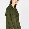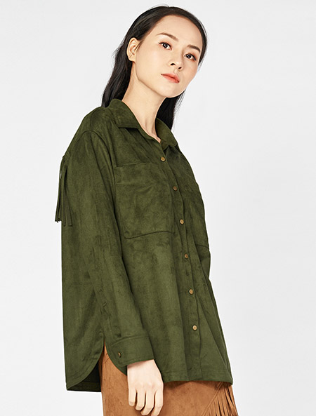 - Áo sơ mi nữ da lộn, dài tay, cổ đức, túi vuông ốp